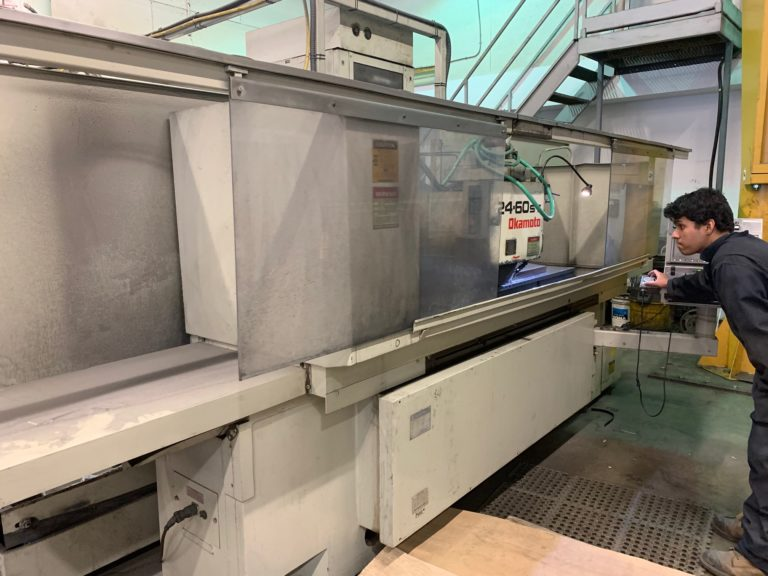 - Okamoto CNC surface grinder: 24″ x 60″ table for precise finishes on large components